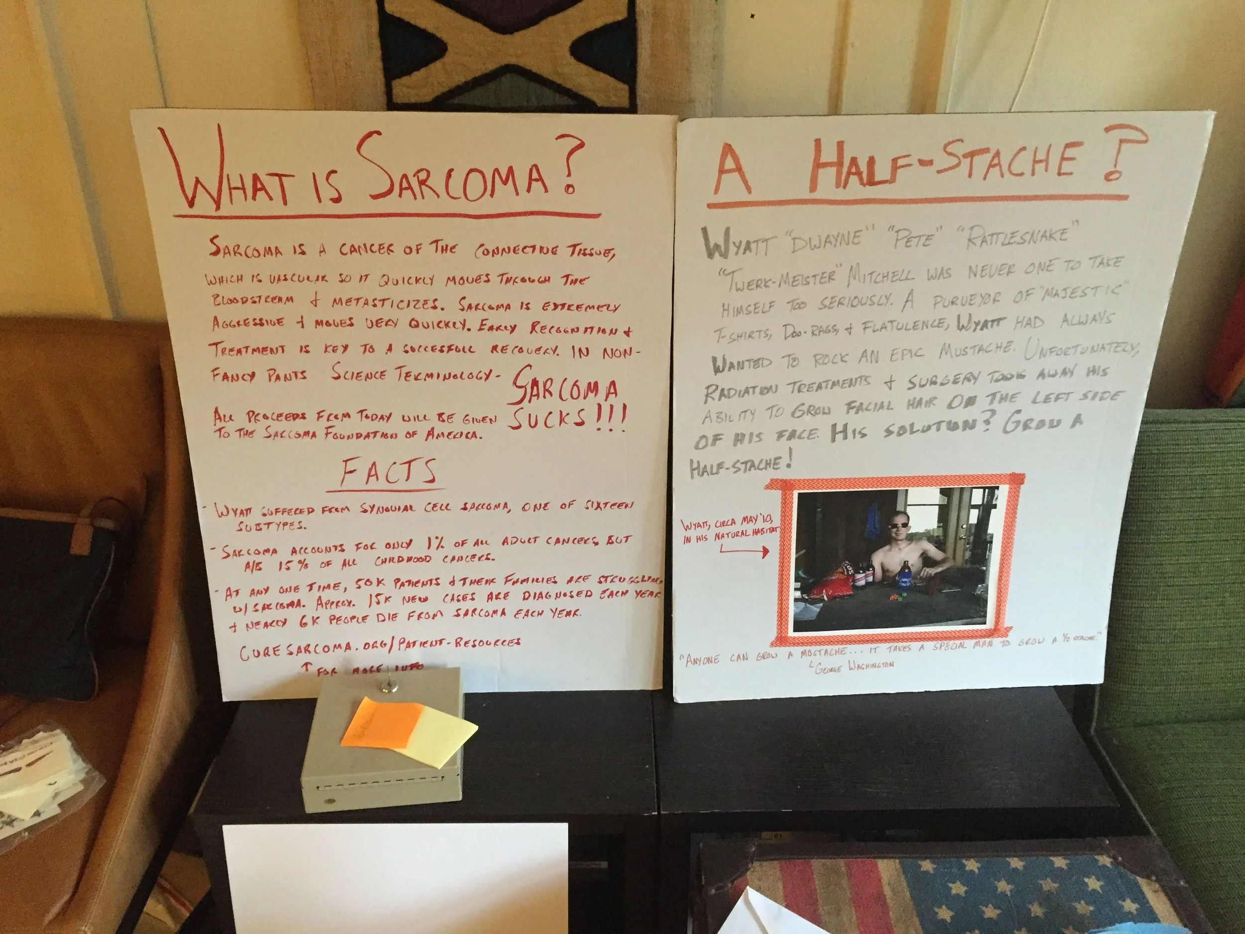 What’s a Half-Stache? Well a big reason for this party is to celebrate the life of Julia’s twin brother Wyatt who died of cancer in 2010. Wyatt had a gift of finding fun and positivity in every circumstance. After several rounds of chemo and radiation left him with the ability to only grow hair on one side of his face, he leaned into it and grew out a mustache - or a half mustache. We decided to take a page out of Wyatt’s book and turn a decidedly bittersweet day into an opportunity to make a positive impact - here in our backyard and all around the world.